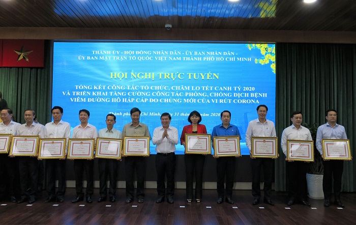 | Chủ tịch UBND TP Nguyễn Thành Phong trao tặng bằng khen của UBND TP cho các tập thể có thành tích xuất sắc trong công tác tổ chức, chăm lo Tết Nguyên đán Canh Tý năm 2020 |